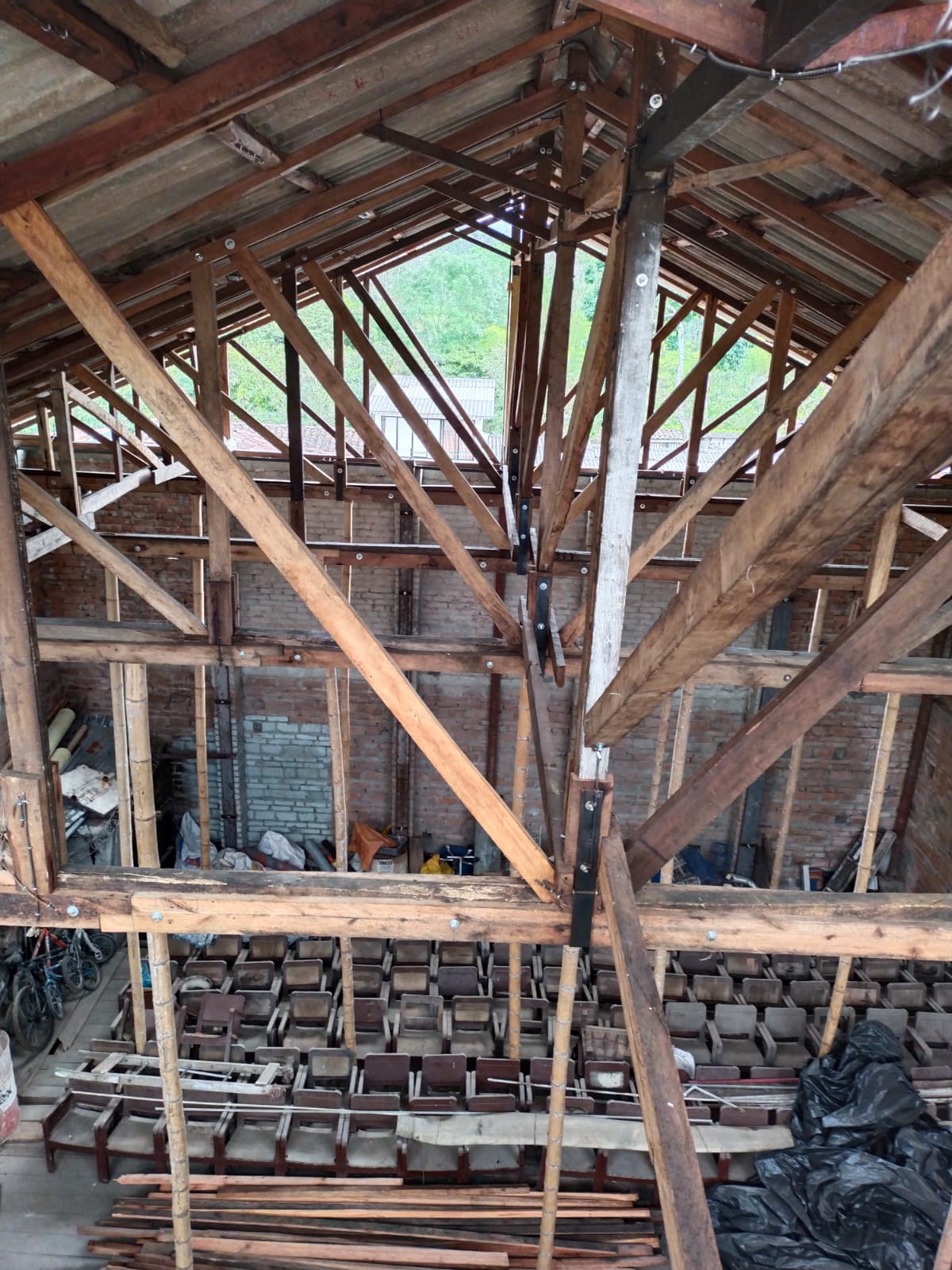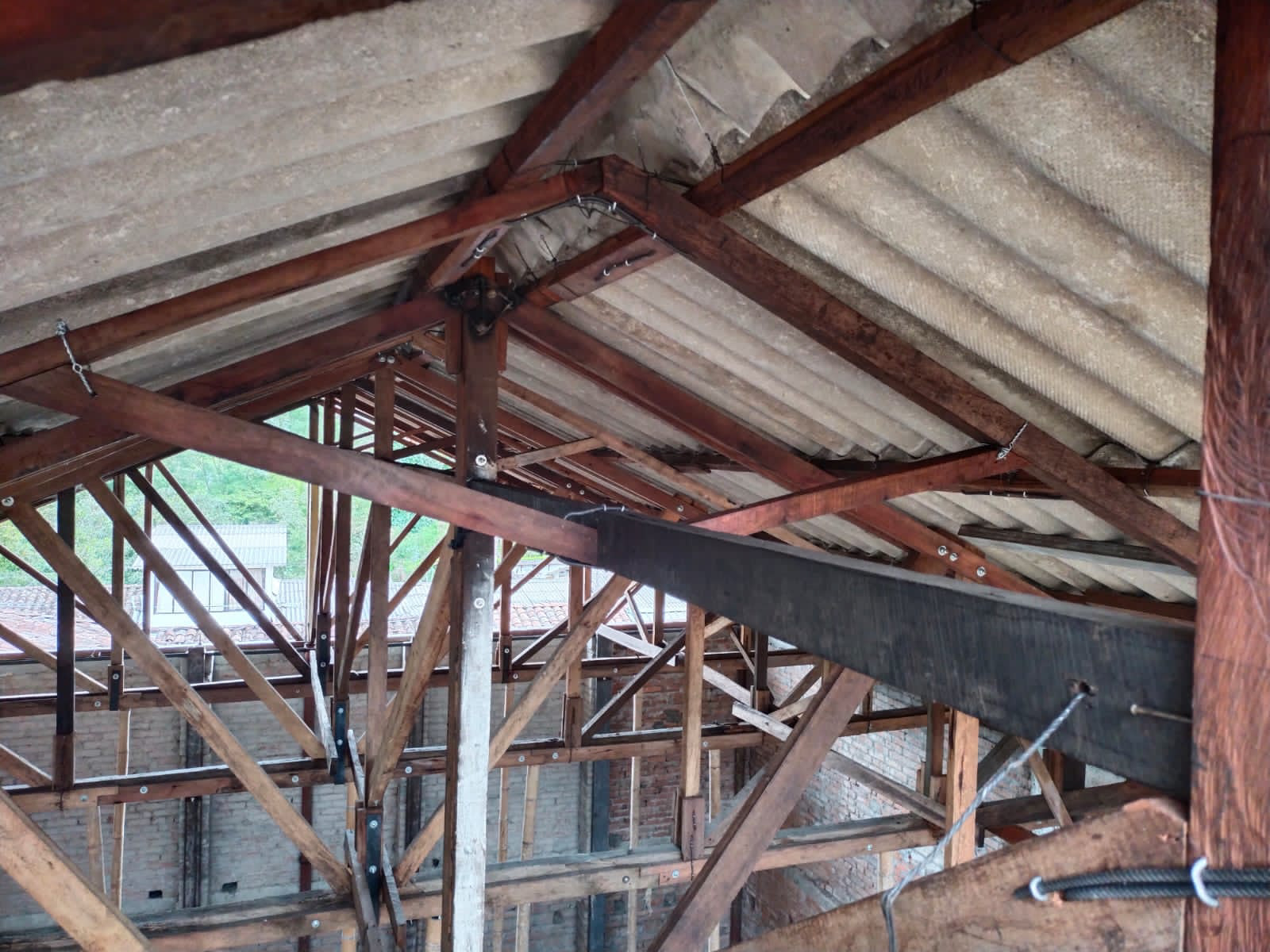 El reemplazo del tejado ya se encuentra en un 50% de ejecución. Recordemos que el teatro tiene una profundidad de 35,44 metros. Se han sustituido cada una de las vigas y estructuras que sostienen el techo del recinto por material nuevo.