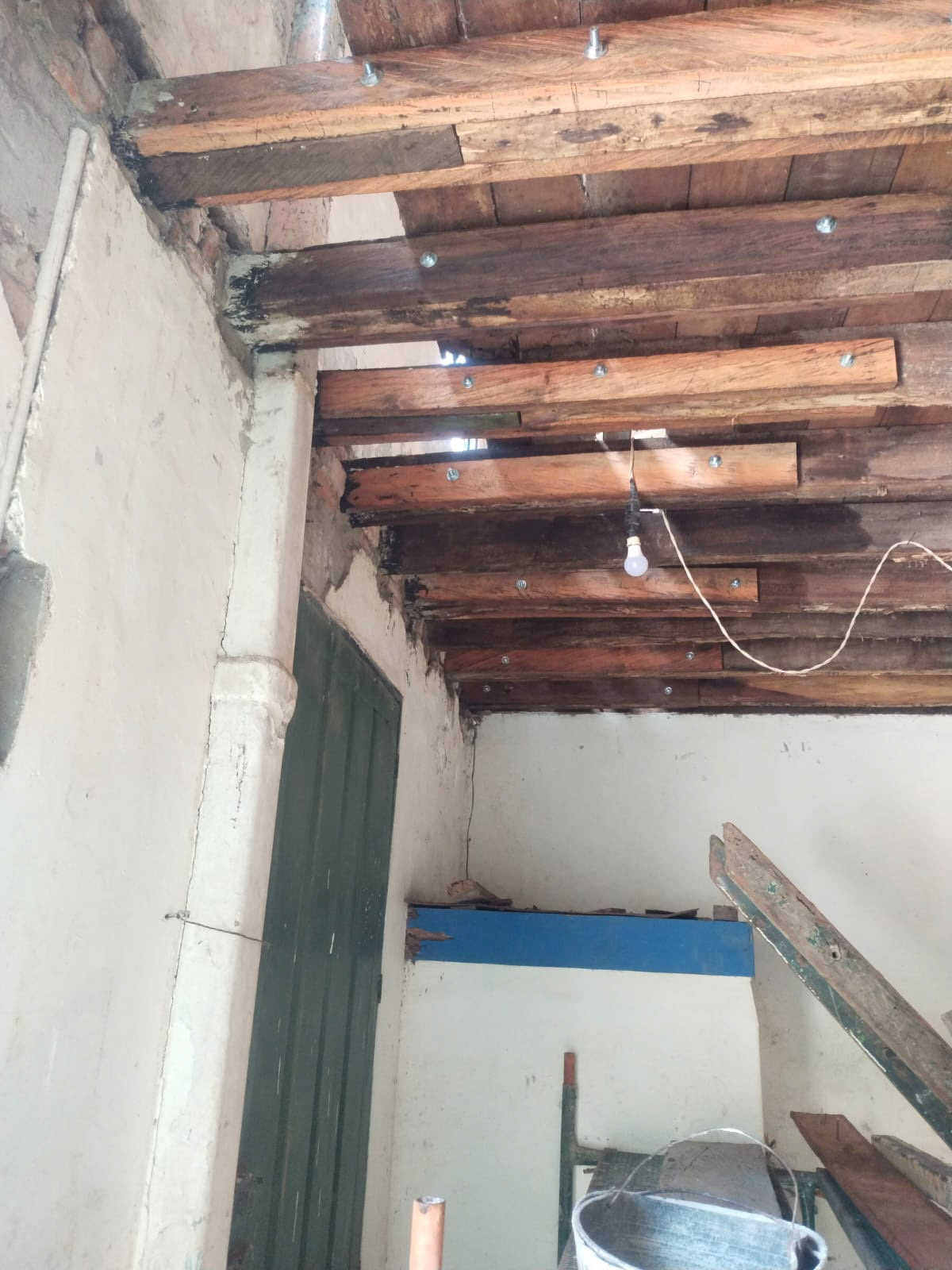 En esta ocasión ingresamos al interior del Bar Teatro para recuperar las vigas que dan soporte al techo y aseguran la estructura